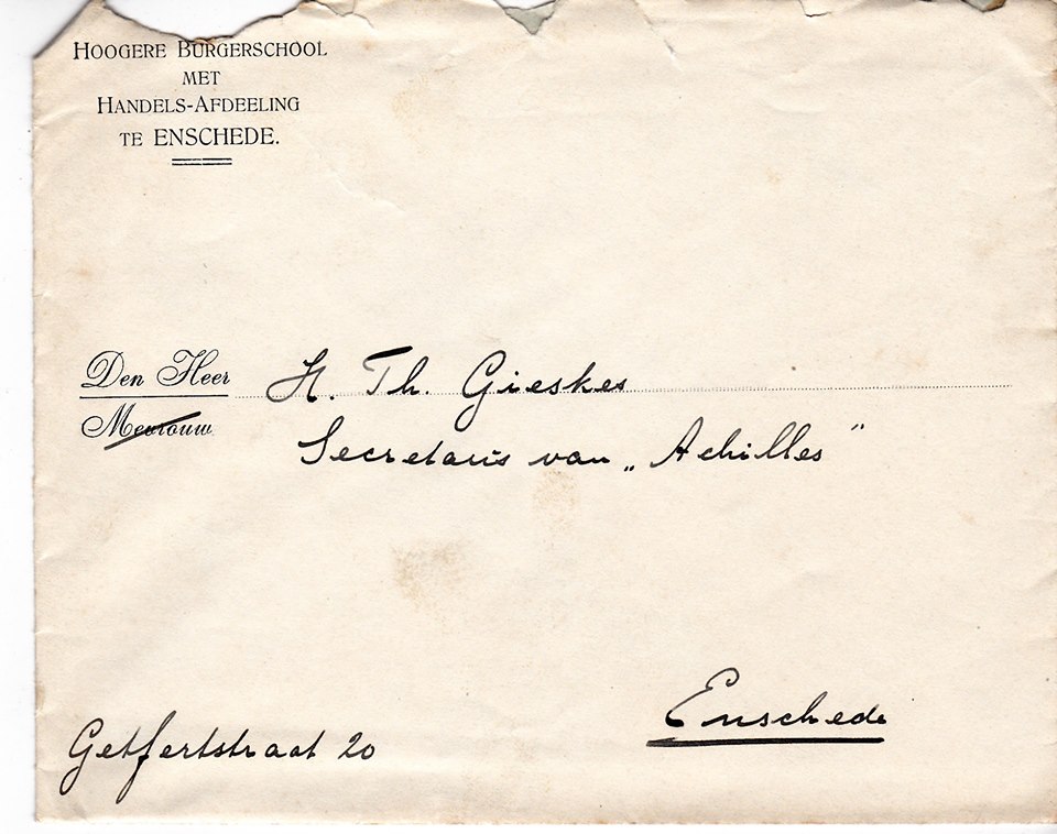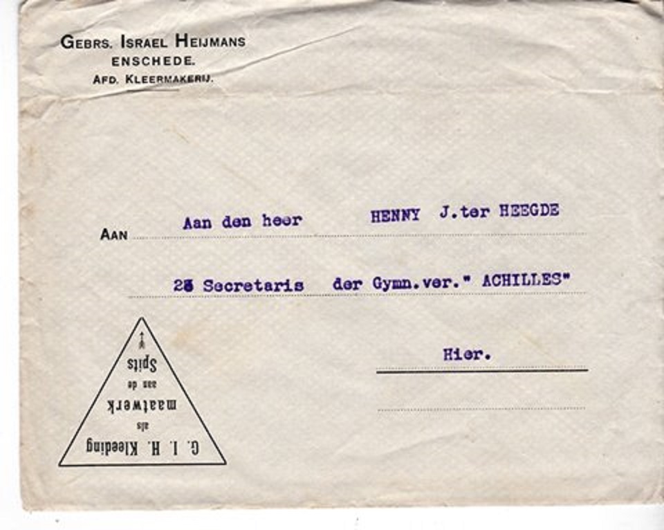 Haaksbergerstraat 25 Gebrs. Israël Heijmans kleermakeri brief.
