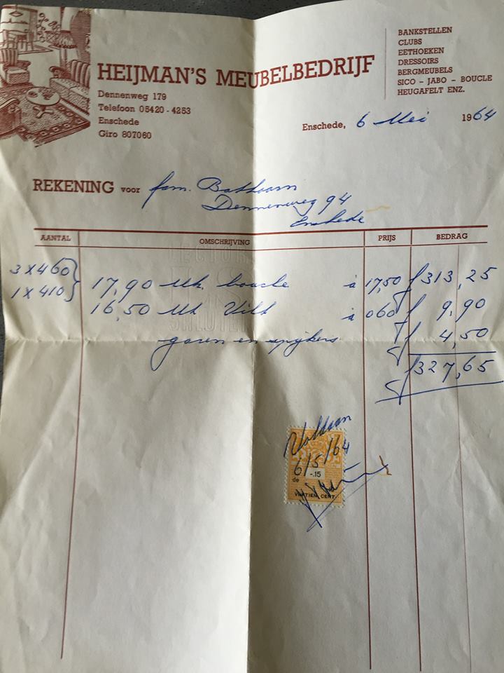 Dennenweg 179 Heijman's Meubelbedrijf rekening 6-5-1964.