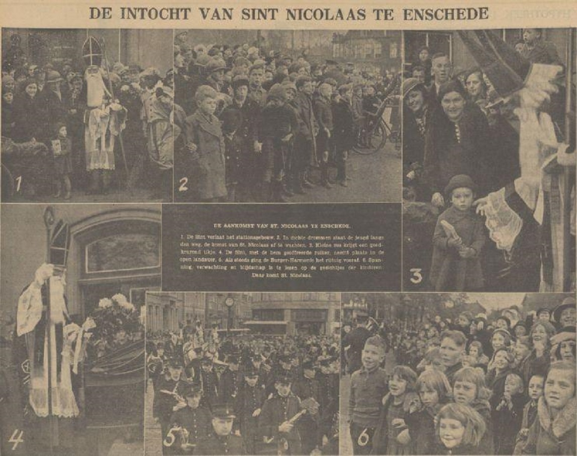 Station en andere locatie Intocht Sint Nicolaas krantenfoto Tubantia 26-11-1934