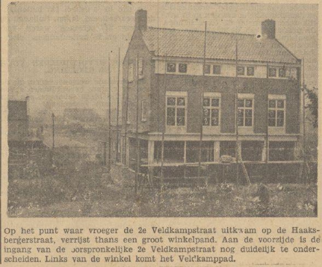 Haaksbergerstraat hoek Veldkamppad (vroeger 2e Veldkampstraat) nieuw winkelpand krantenfoto Tubantia 17-11-1948.