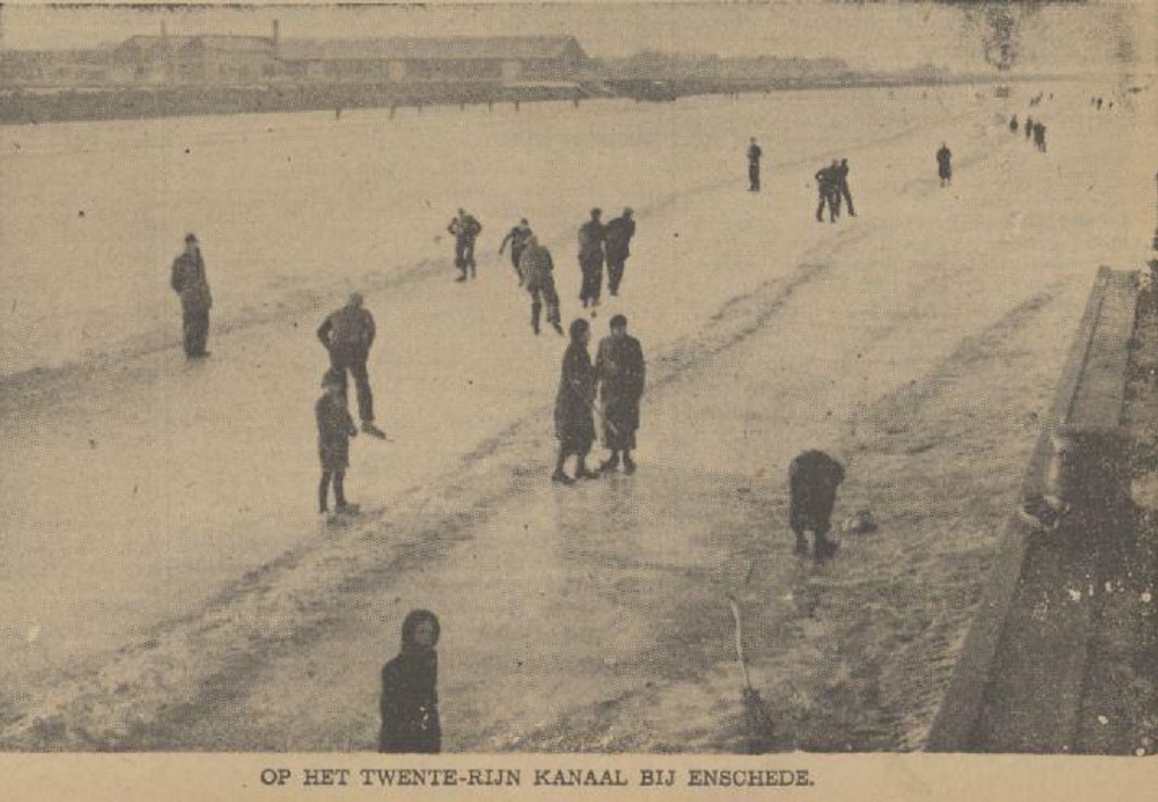 Twentekanaal Enschede schaatsen krantenfoto Tubantia 12-2-1940.