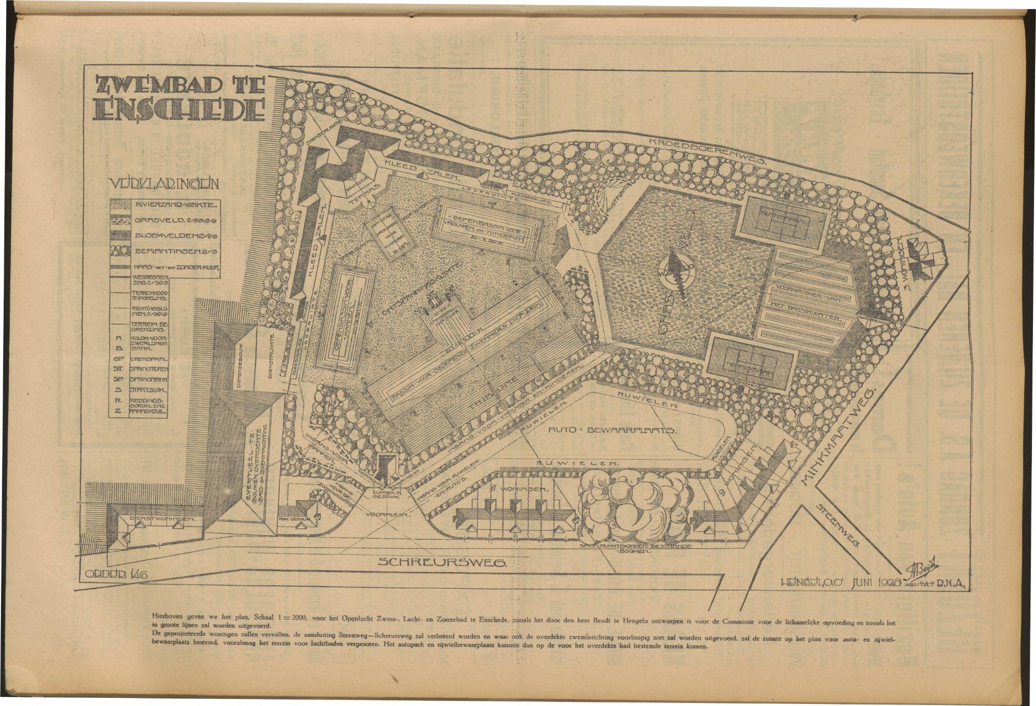 Zwembad wat er nooit is gekomen. Apart zwembad voor heren en dames met kinderen. 1928.