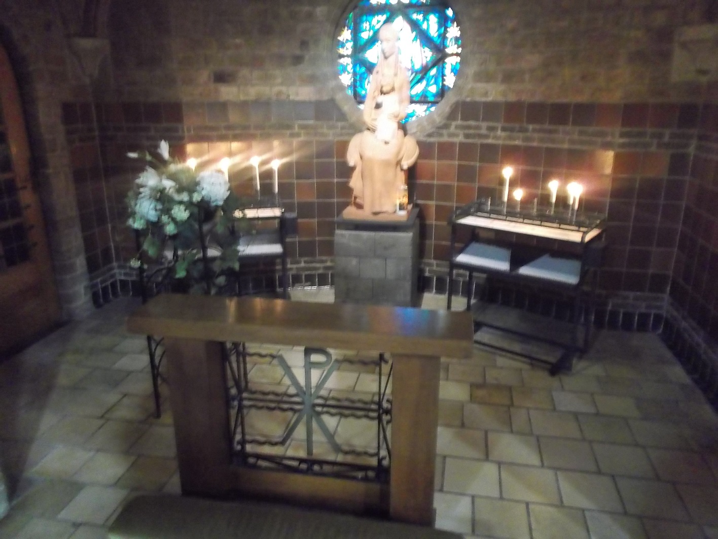 De huidige is ingewijd in 1940 maar er is blijkbaar al altijd een kapel geweest. Op de laatste foto onder het torentje en in die ronding aan de voorkant heeft de