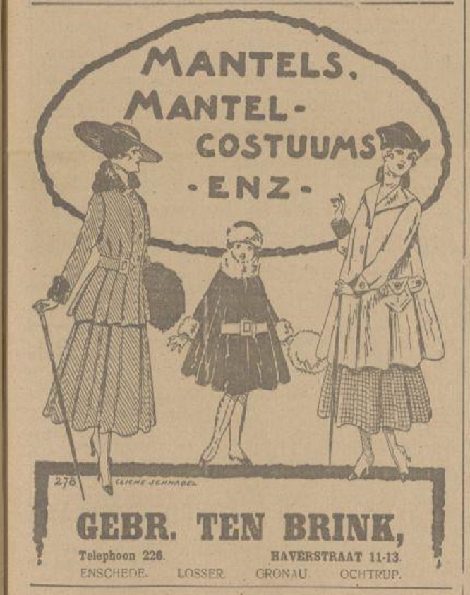 Brink, Gebroeders ten, Heerenkleedingmagazijn, Haverstraat 13.