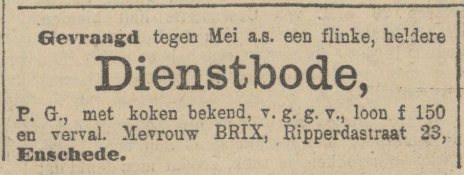 Brix, Dr. C.T., Oor-, neus- en keelarts, Ripperdastraat 23.