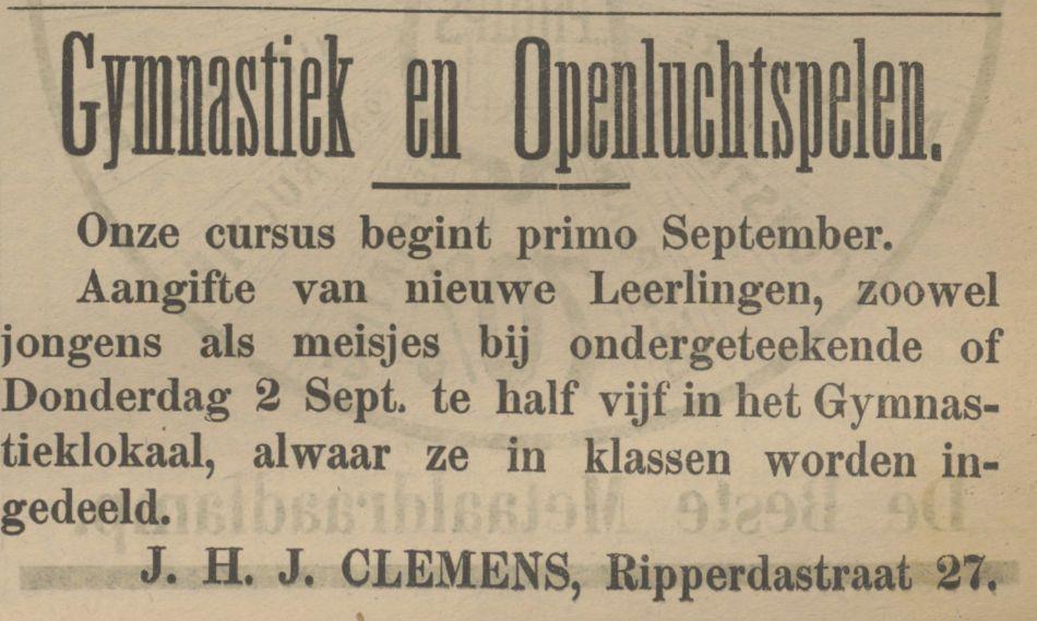 Clemens, J.H.J., Gymnastiekleeraar, Ripperdastraat