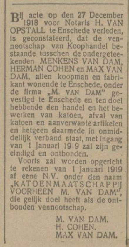 Dam, Menkens van, Handel in katoenafval, kantoor, Emplacement S.S.