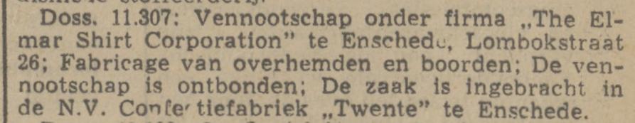 Met deze advertentie uit de Tubantia van 30-11-1946 heb ik een lijstje van confectiebedrijven in Enschede.