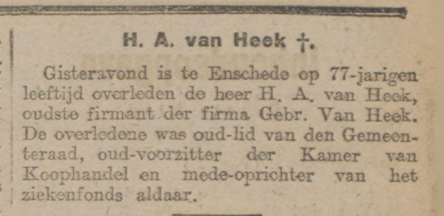 Heek, H.A. van, Fabrikant, Hengelosestraat 32.