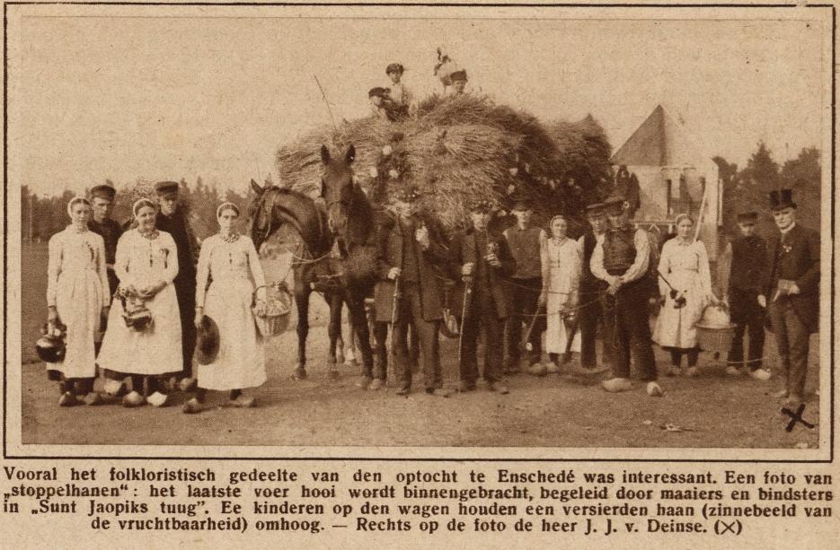 Voor de oogst trok gewoonlijk de hele buurt in optocht naar de velden, soms met versierde wagens en in speciale kleding. In Twente bijvoorbeeld droegen de vrouwen de witte Sint Japiksdracht, zo genoemd naar de heilige aan wie de dag gewijd is en waarop men vaak met oogsten begon: 25 juli.