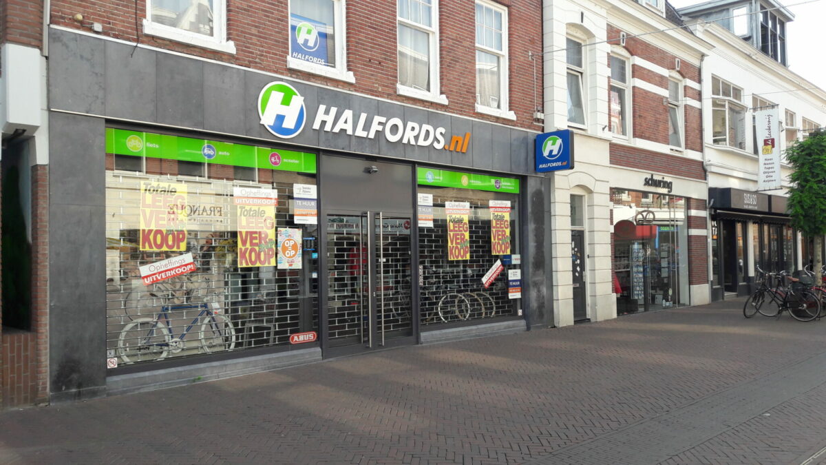 Het Halfords filiaal aan de Korte Hengelosestraat in Enschede sluit binnenkort definitief de deuren. Het pand staat te huur en op dit moment is de opheffingsuitverkoop nog in volle gang.