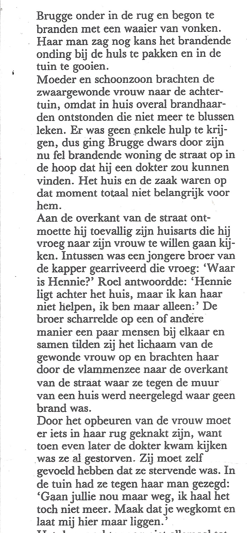 "Het is een zwarte bladzijde in de geschiedenis van Market Garden. Een vergeten bladzijde ook. Deze jongens liggen hier, de rest in Oosterbeek. Daar vindt elk jaar de grote herdenking plaats. Arnhem wordt over het algemeen gezien als een redelijk eerlijke strijd. Een drama voor de Britten, maar wel een strijd waarbij de partijen elkaar over en weer respecteerden. Op het hoogtepunt werd er zelfs een staakt-het-vuren ingelast om de Engelse gewonden naar het ziekenhuis te brengen. Duitsers en Engelsen werkten daarbij samen. De moord op die acht weerloze krijgsgevangen, gepleegd door SS-ers, past absoluut niet in dat beeld."