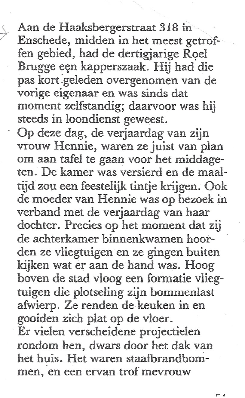 Zeer heftig en triest is het vorig verhaal van het door een bombardement getroffen Hennie Brugge-Tuender aan de Haaksbergerstraat.