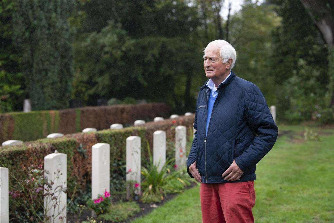 Het drama maakt hem nog altijd emotioneel. Ook op deze grijze maandag, als hij via de grote poort de Oosterbegraafplaats oploopt. Wientjen vindt er blind de weg. Tussen de graven links en rechts loopt hij over het lange pad naar het deel waar de militaire slachtoffers uit de oorlog liggen. Een hoog marmeren kruis, vast herkenningspunt van alle Britse begraafplaatsen, staat aan de voet van een dubbele rij oorlogsgraven.