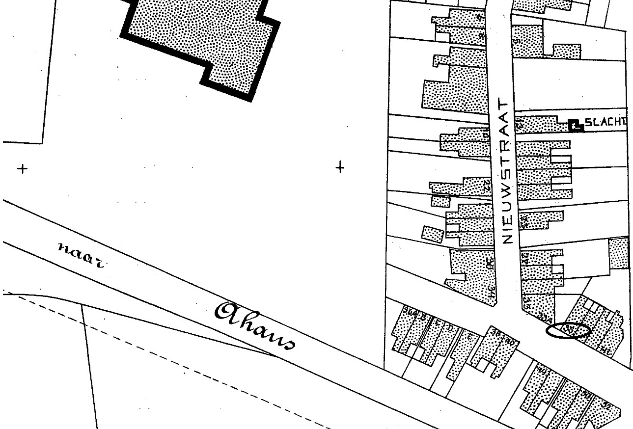 Misschien omdat de Brammelerstraat hierop nog niet is te zien. Het pand Helmich v. Heek & Zn. staat er nog aan de Haaksbergerstraat einde Marktstraat. Dit pand is later afgebroken t.b.v. aanleg Brammelerstraat en ontsluiting Stadsmaten.