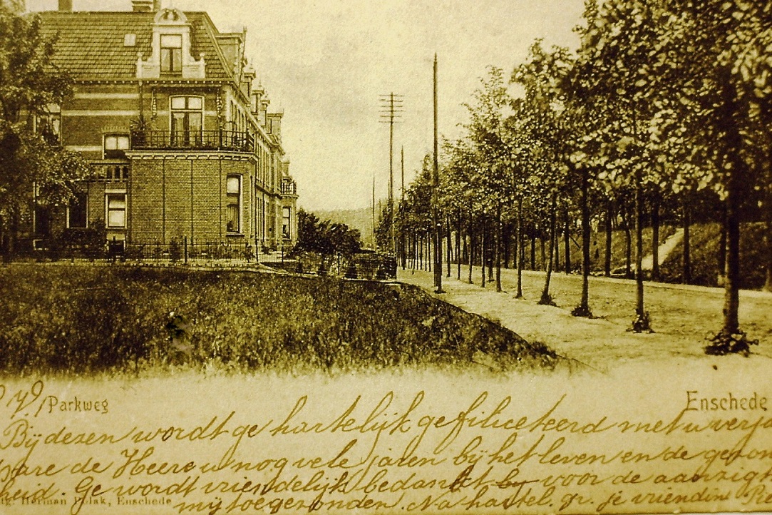 Toch nog even terug naar die huizen aan de Parkweg op de hoek van de Ruyterlaan. Het lijkt wel of de Parkweg in de loop der jaren steeds dieper is komen te liggen. Op de 1910 foto liggen ze bijna op straatniveau en het talud van de spoorlijn er tegenover is niet half zo hoog als nu. Op de latere foto’s zie je de trapjes steeds meer treden krijgen. Nu kunnen ze de huizen opgevijzeld hebben, maar het lijkt me waarschijnlijker dat de Parkweg uitgegraven is…