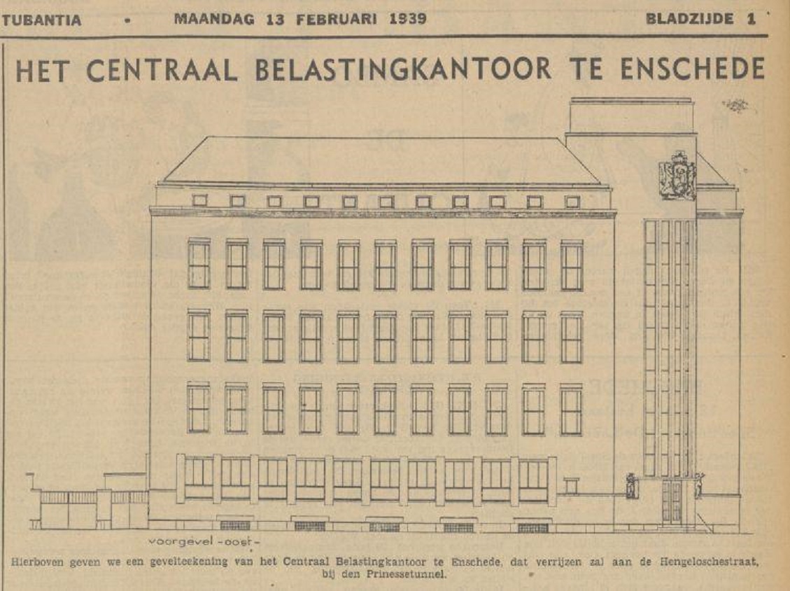 Hengelosestraat 75 tekening ontwerp belastingkantoor krantenbericht Tubantia 13-2-1939