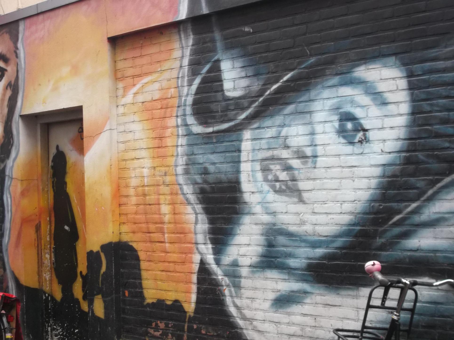 muurbeschildering op coffeeshop Sahara aan de Stadsgravenstraat 18.