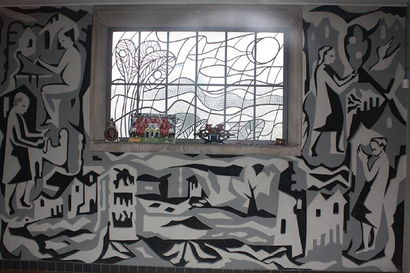 Hengelosestraat Kunstwerk de Conferentie bij Pedagogisch Centrum 1962