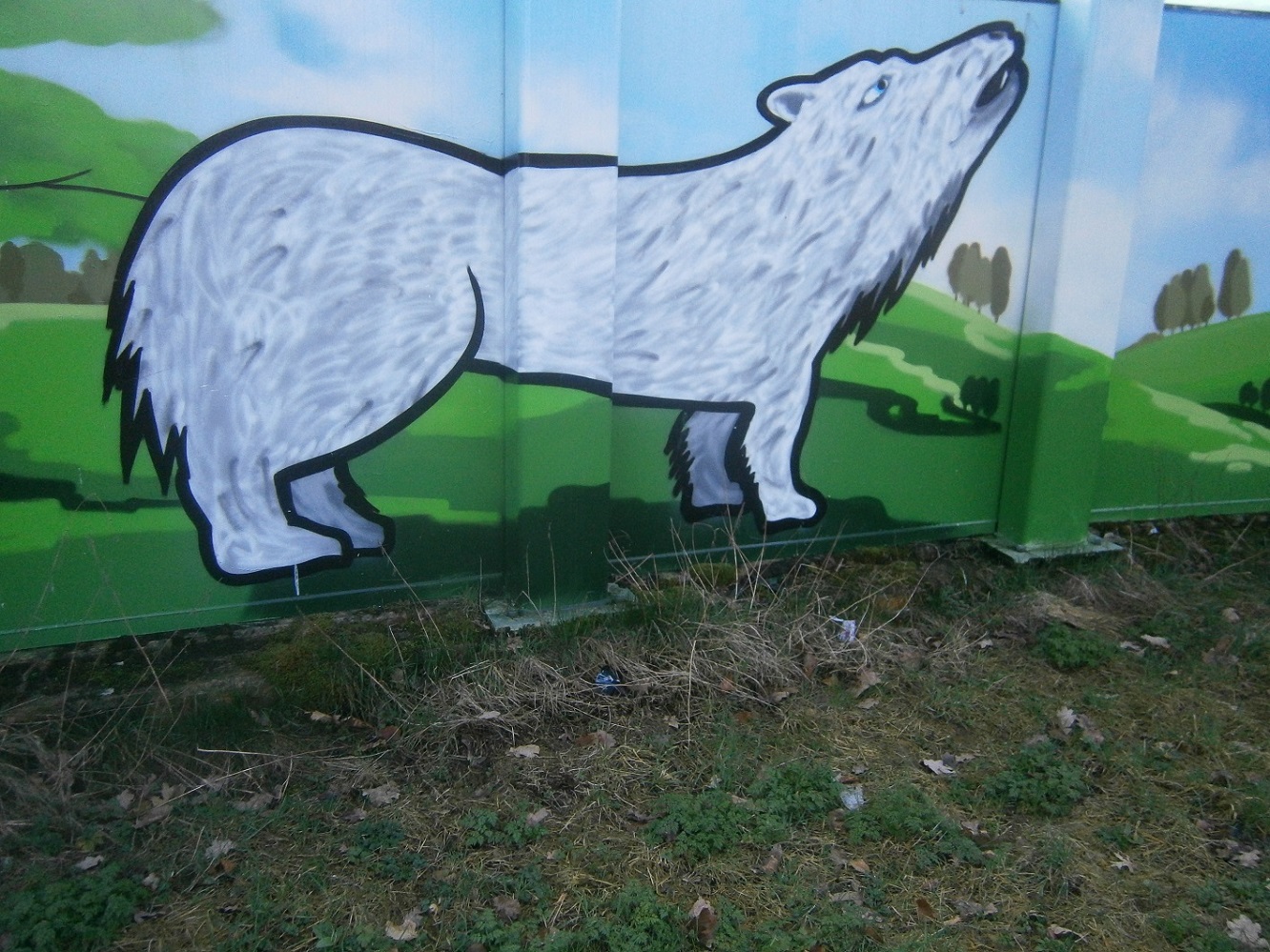 Onderaan de schildering lezen we de naam van Heidi Ulrich. Dat moet wel de kunstenares zijn. Na wat speurwerk komen we erachter hoe het kunstwerk tot stand is gekomen.