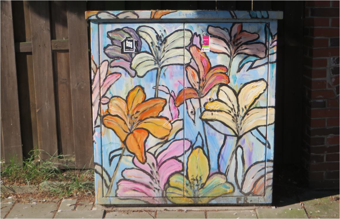 Het thema van elke kast verwijst naar de straatnaam. Gladiolen in de Gladiolenstraat en Hyacinten in de Hyacintstraat. Kunstenaars zijn Huub Filart en Marian Wassenburg.