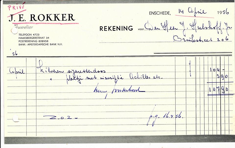 Haaksbergerstraat 34 rekening juwelier J.E. Rokker 1956.