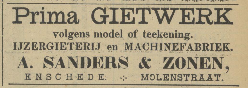 Sanders & Zonen, A., Machinefabriek, Molenstraat 77-81.
