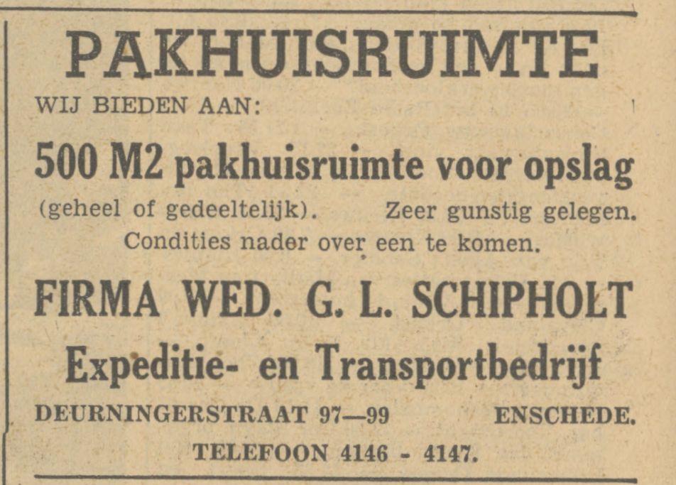 Schipholt, Fa. Wed. G.L., Vrachtrijders en Expediteurs, Deurningerstraat 99