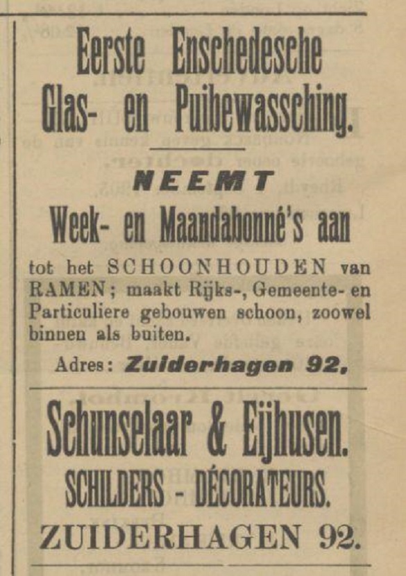 Schunselaar & Eyhusen, Schilderszaak en Glazenwassscherij, Zuiderhagen 78-80