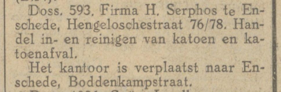 Serphos, Jacob, Fabrikant, Lid der firma Serphos & Zonen, Oldenzaalschestraat 111.