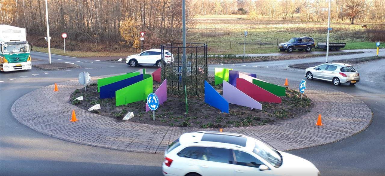 De entree van het Euregio-bedrijventerrein kon wel wat kleur gebruiken, vond de Vereniging Euregio Bedrijvenpark. Met dank aan een bijdrage van Initiatiefkracht Oost, de commissie van wijkraden in stadsdeel Oost, zijn gekleurde panelen geplaatst in het midden van de rotonde op de kruising Euregioweg/Sleutelweg.