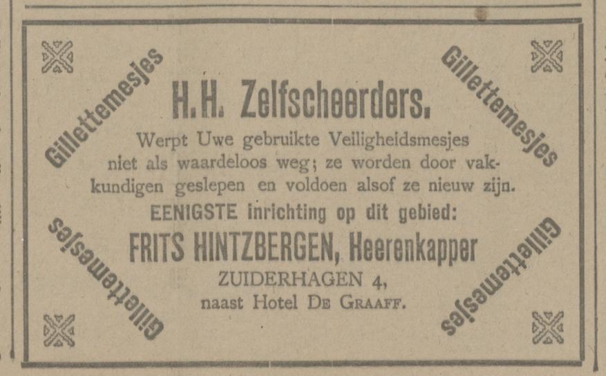 Op 14-4-1918 zit er in het pand Zuiderhagen de heerenkapper Frits Hintzbergen.