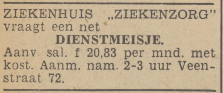 Ziekenhuis "Ziekenzorg", Veenstraat 72.
