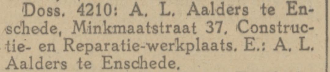 Aalders, A.L. Constr.- en rep.werkpl., Minkmaatstraat 37-