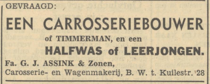 Assink & Zn., Fa. Carosserie en wagenmakerij, B.W. ter Kuilestraat 26