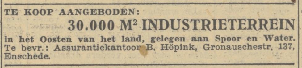 Assurantiekantoor B. Höpink, Gronausestraat 137.