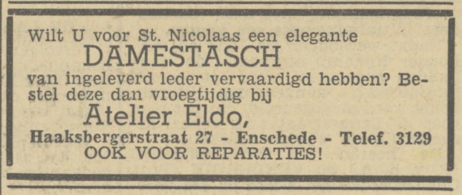 Atelier Eldo eig. L. Domp, Haaksbergerstraat 27.
