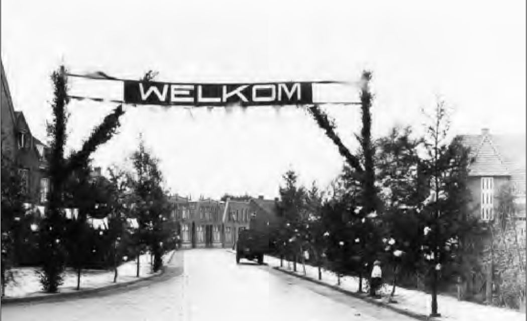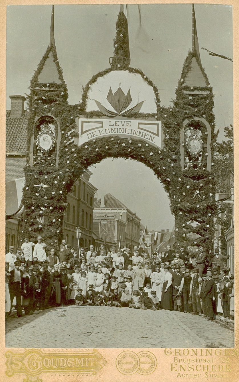 Oldenzaalsestraat Versierde poort gemaakt ter ere van koninklijk bezoek.jpg