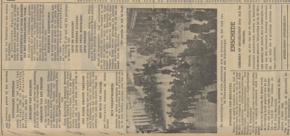 Morgen is het 84 jaar geleden dat prinses Beatrix werd geboren. Ter gelegenheid daarvan heeft Burgemeester Rückert destijds een oorkonde voorgelezen op het balkon van het stadhuis aan de Langestraat. Er was ook een feestelijke optocht naar het stadhuis. Zie verder onderstaand krantenbericht uit de Tubantia van 1-2-1938.