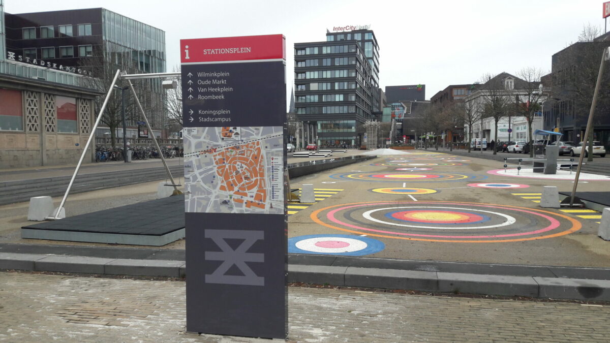 Vorig jaar was de start van het festival voor creatieve technologie tegelijk het begin van de transformatie van het Stationsplein. Cirkels en strepen in felle kleuren op het plein, twee interactieve schommels die muziek maken als ze gebruikt worden en een dj-tafel waar je met een smartphone muziek kunt mixen. Daar komt nu de ruim 8 meter hoge installatie met het robotbeeld bij.