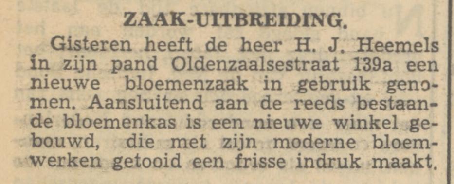 Bloemenmag. H.J. Heemels, Oldenzaalsestraat 139a.