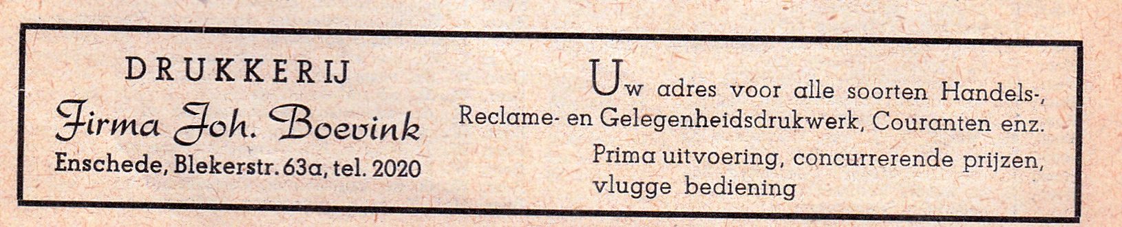 Boevink, Joh. Drukk., Bleekerstraat 63a