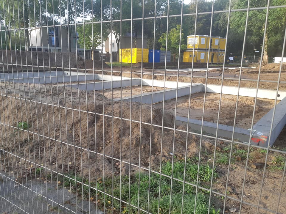Betonfunderingen worden geplaatst bij de nieuwbouw van 10 woningen aan de Aert van der Neerstraat hoek Adriaen van Ostadestraat