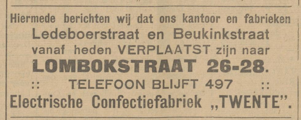 Met deze advertentie uit de Tubantia van 30-11-1946 heb ik een lijstje van confectiebedrijven in Enschede.