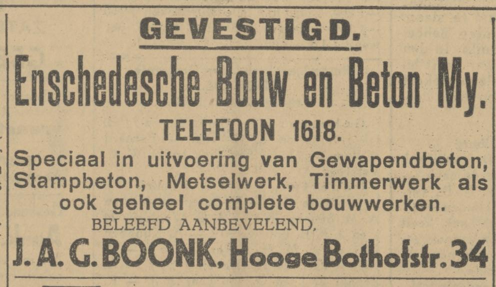 Boonk, J.A.g. Dir. Enschedesche Bouw en Beton Mij N.V., Wagelerstraat 22