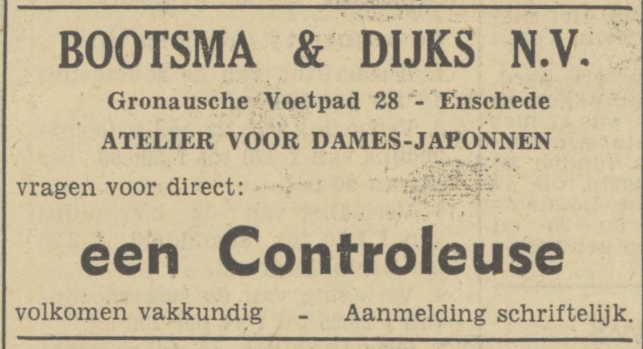 Bootsma Dijks N.V. Conf.fabr., Gronausche Voetpad 28.
