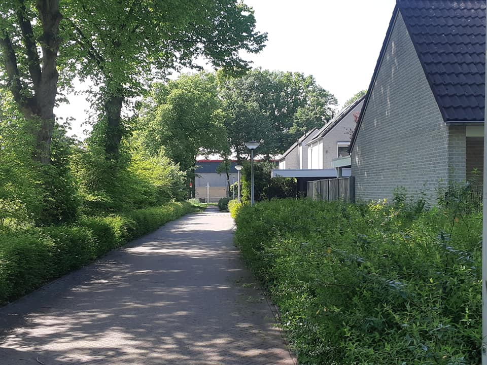 Van de Vliegveldweg eerst z.w-waarts, daarna n.w.-waarts tot de Vergertweg.