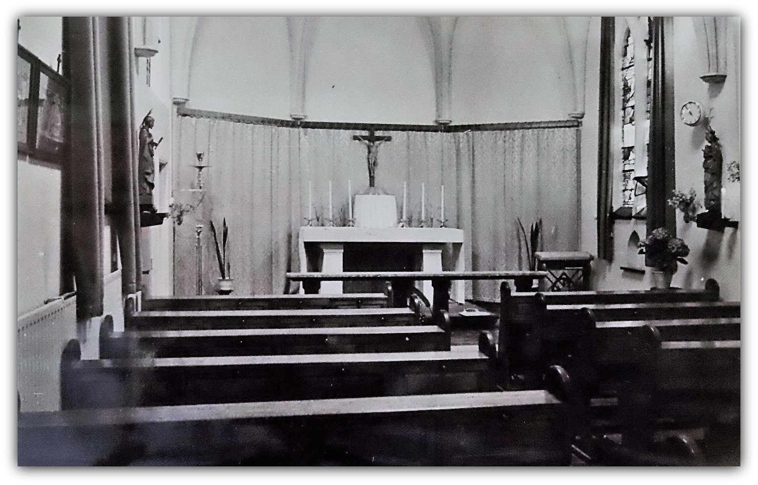 ik dacht aan de kapel van klooster dolphia , maar daar heb je die bogen aan de achterwand niet...