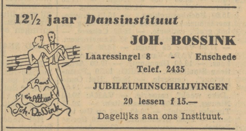 Dansinst. J. Bossink Laaresstraat 8. Fout in telefoonboek 1950 vermeld, moet dus zijn: Laaressingel 8.