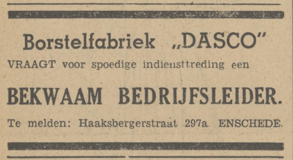 Dasco, Borstelfabr. Haaksbergerstraat 297a.